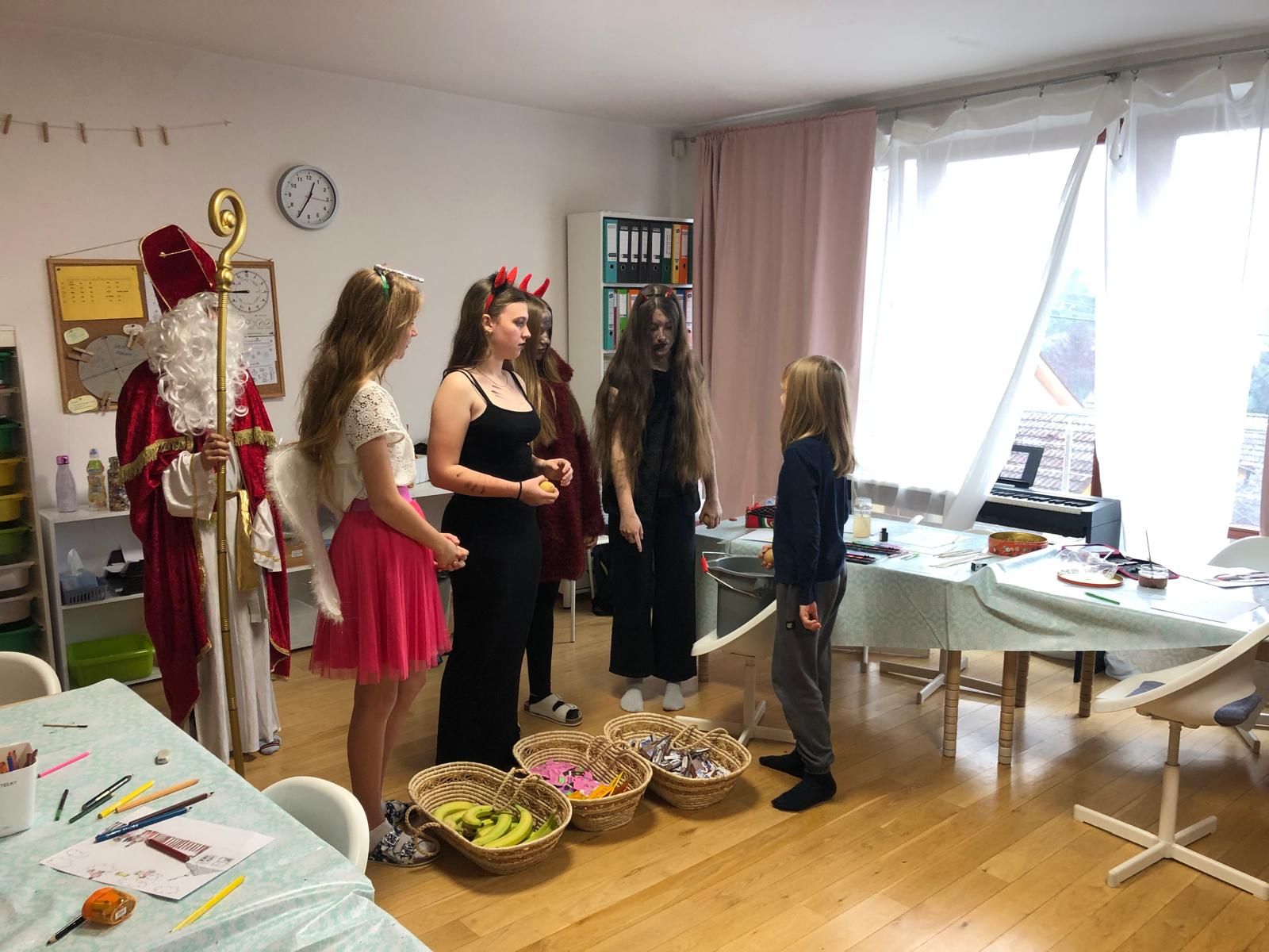 I v naší škole proběhl v pátek 5. 12. Mikuláš. Čerti s Mikulášem a andělem navštívili pouze školáky, zatímco v mateřské škole vše proběhlo hladce pouze s Mikulášem a andělem. Děti dostaly zdravé mlsání a nejmladší školáci se těší až vyrostou, že si také vyzkouší jaké to je být Mikulášem :-)